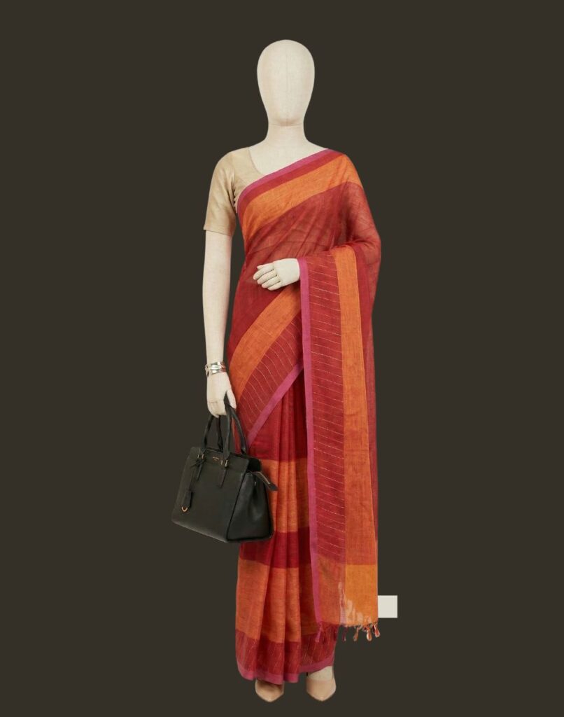 That Banarasi or Silk Tussar you wore to a high-stakes pitch last month? It doesn’t need to go back into storage. By changing the drape or pairing it with a more relaxed layer, it transitions effortlessly to an end-of-year office party or a gallery opening. You aren’t “repeating” an outfit- you are re-interpreting a classic.